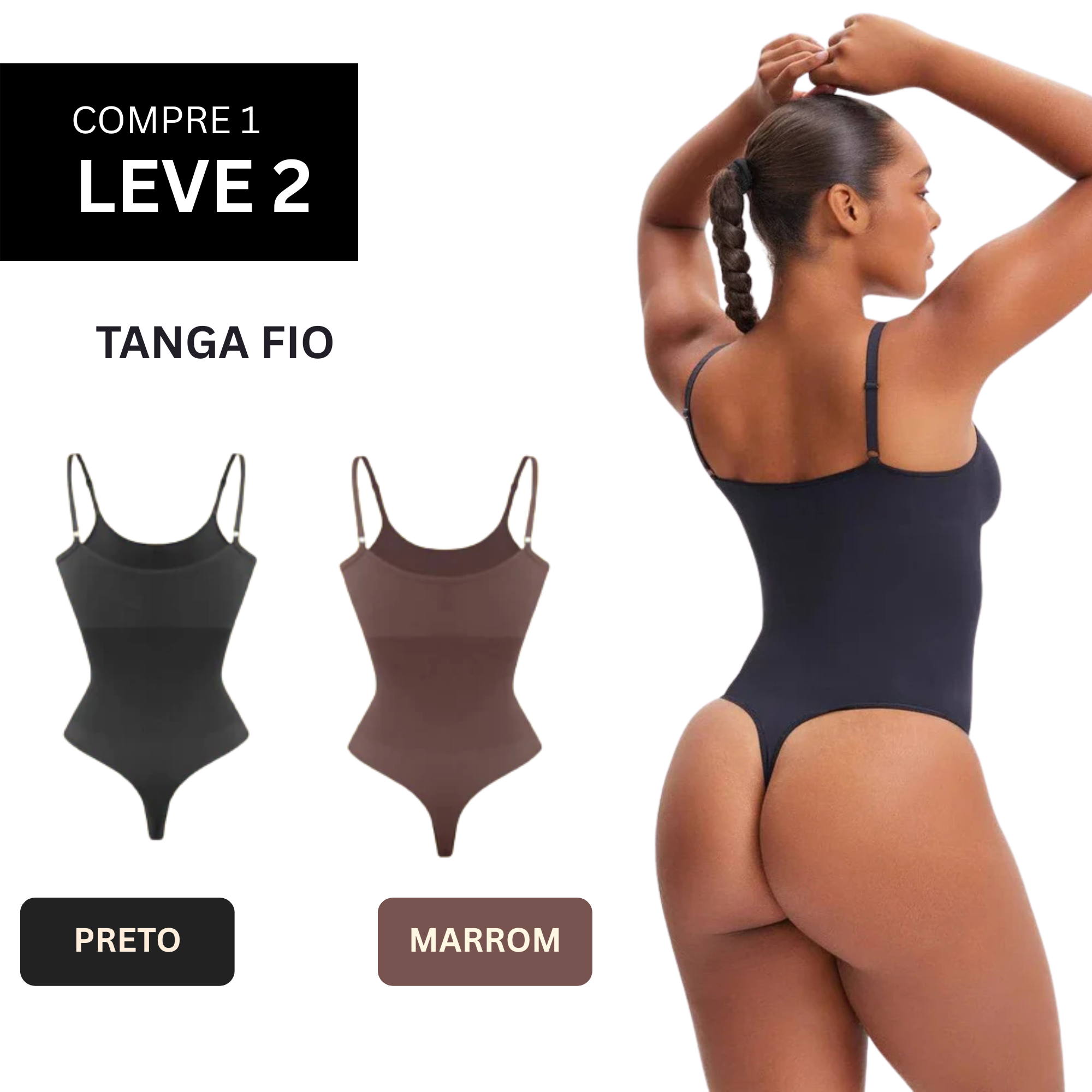 Aproveite e leve 2 Body SlimShape pelo preço de 1, com frete grátis para todo o Brasil. Disponível nos modelos tanga fio e tanga normal.