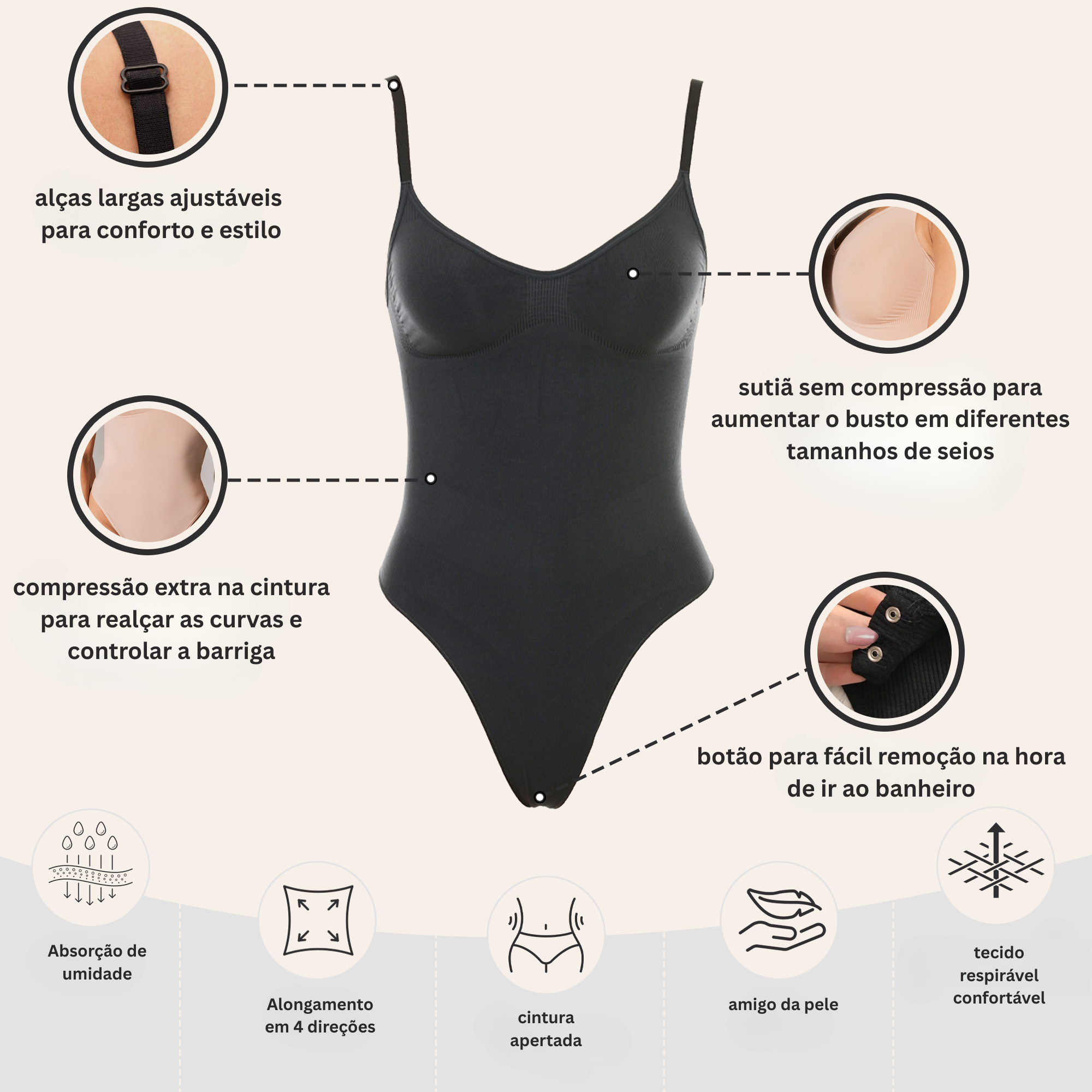 Com o nosso body modelador você será capaz de caber em qualquer roupa em apenas 1 segundo